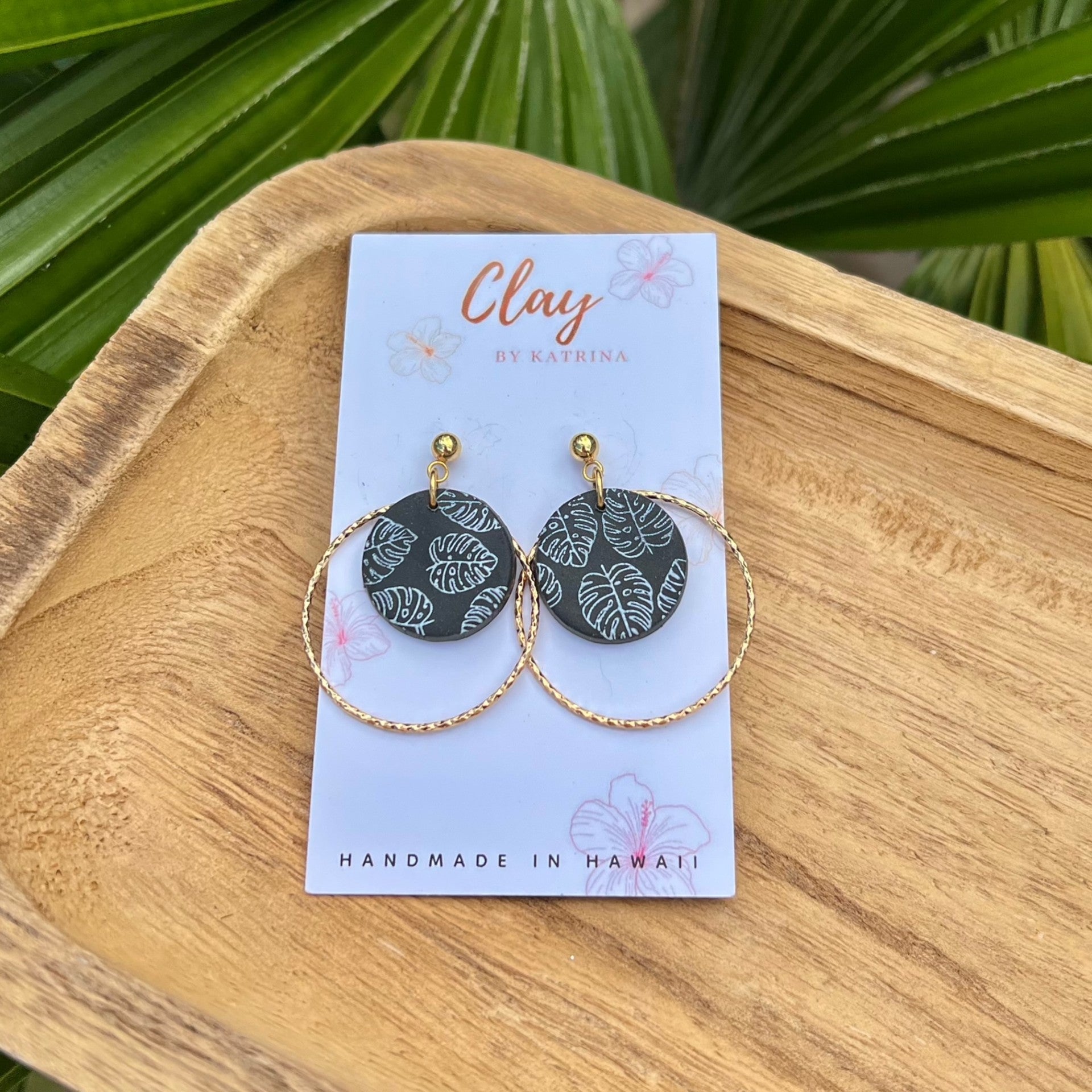 BLACK CIRCLE (TEXTURED) HOOP - MONSTERA