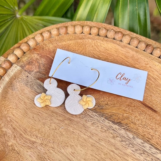 Disney inspired polymer clay earrings. Using a texture mat for a leafy print.