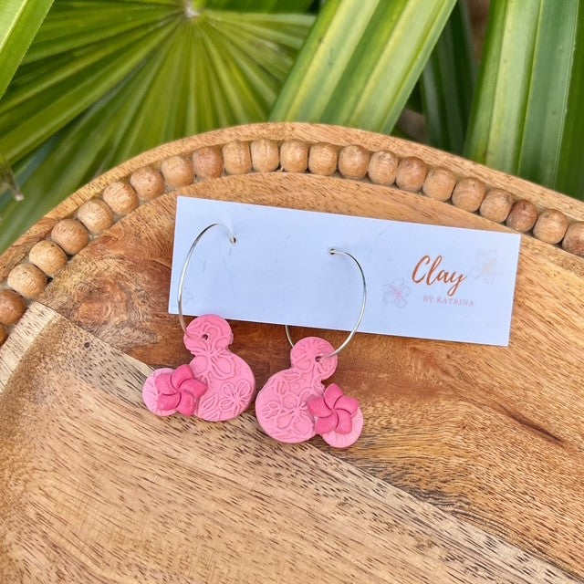 Disney inspired polymer clay earrings. Using a texture mat for a floral print.