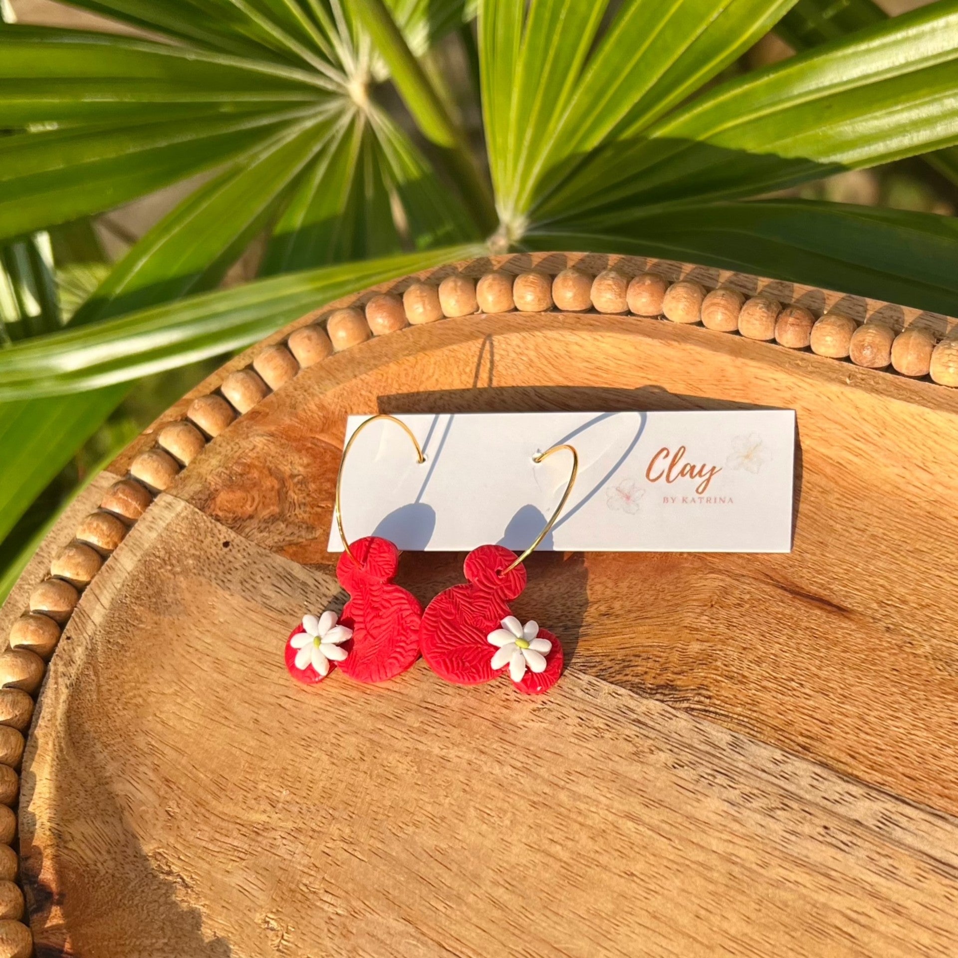 Disney inspired polymer clay earrings. Using a texture mat for a leafy print.