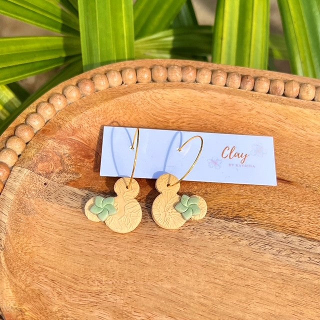 Disney inspired polymer clay earrings. Using a texture mat for a leafy print.