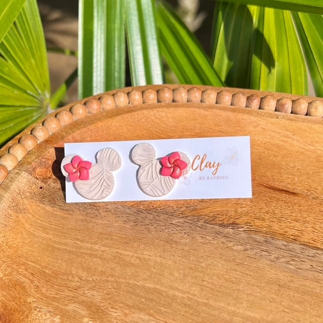 Disney inspired polymer clay minnie studs. Resin is added on the back to secure the post.