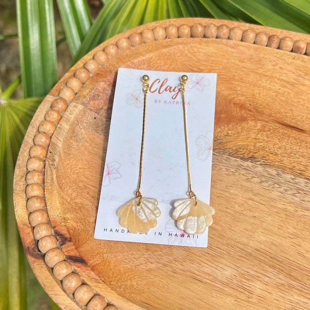 Polymer clay shell threader earrings.