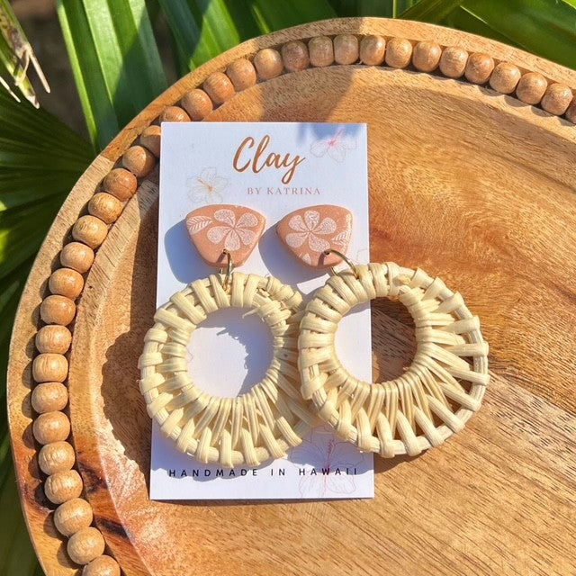 Polymer Clay using a silk screen with acrylic paint for a hibiscus print