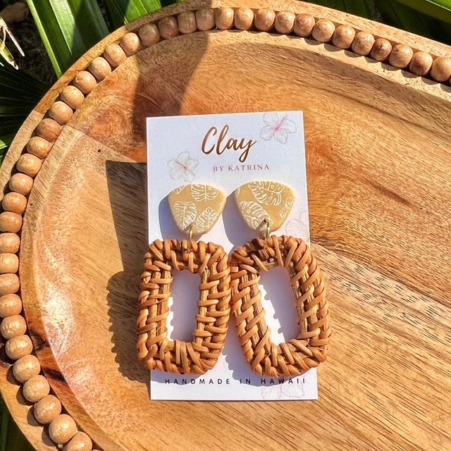 Polymer Clay using a silk screen with acrylic paint for a monstera print