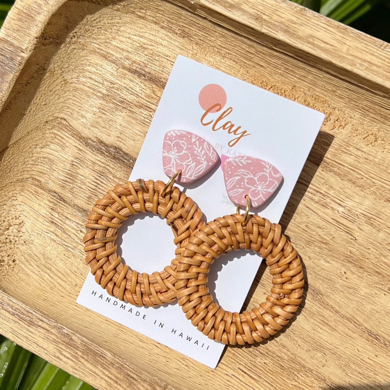 Polymer clay earrings. Silk screen used to create a floral print. Resin is added to the back of the clay to seal down the post.