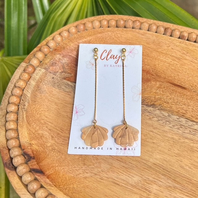 Polymer clay shell threader earrings.
